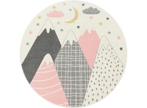 Kinderteppich PACO HOME "Nino 886", pink, B:200cm H:13mm L:200cm Ø:200cm, Polypropylen, Teppiche, Kurzflor, Spielteppich, Motiv Berge & Sterne, Pastell-Farben
