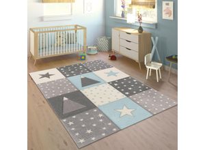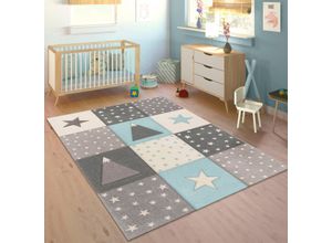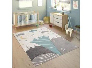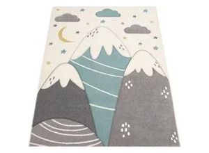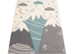Kinderteppich PACO HOME "Cosmo 340", blau, B:120cm H:17mm L:170cm, Polypropylen (PP), Teppiche, Kinderteppich, Kurzflor, Pastell-Farben, 3D Effekt, Motiv Berge, Punkte & Sterne