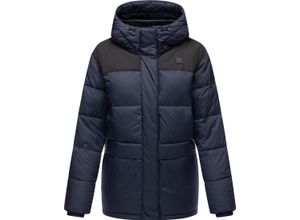 Anorak RAGWEAR "Wikesh", Damen, Gr. L (40), blau (navy), Obermaterial 1: 100% Nylon; Obermaterial 2: 100% Polyester; Innenfutter: 100% Polyester; Wattierung: 100% Polyester, lässig geschnitten hüftbedeckend, hoch geschlossener Ausschnitt, eng Strickbündchen, Jacken, stylische Winter Steppjacke mit Colourblocking