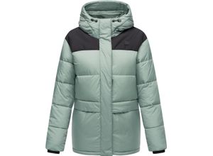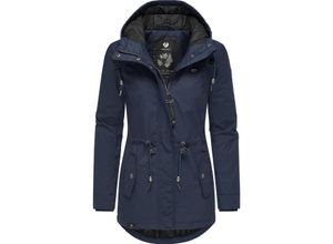 Winterjacke RAGWEAR "Monadis Black Label", Damen, Gr. L (40), blau (graublau), Außenmaterial: 65% Polyester, 35% Baumwolle; Innenfutter: 100% Polyester; Wattierung: 100% Polyester, figurbetont Po-bedeckend, hoch geschlossener Ausschnitt, Ärmel ohne Ärmelschlitz Rippstrickbündchen, Jacken Winterjacke, stylischer Winterparka für die kalte Jahreszeit