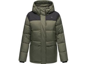 Anorak RAGWEAR "Wikesh", Damen, Gr. L (40), grün (olivgrün), Obermaterial 1: 100% Nylon; Obermaterial 2: 100% Polyester; Innenfutter: 100% Polyester; Wattierung: 100% Polyester, lässig geschnitten hüftbedeckend, hoch geschlossener Ausschnitt, eng Strickbündchen, Jacken, stylische Winter Steppjacke mit Colourblocking
