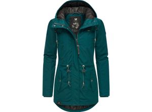 Winterjacke RAGWEAR "Monadis Black Label", Damen, Gr. 5XL (50), grün (flaschengrün), Außenmaterial: 65% Polyester, 35% Baumwolle; Innenfutter: 100% Polyester; Wattierung: 100% Polyester, figurbetont Po-bedeckend, hoch geschlossener Ausschnitt, Ärmel ohne Ärmelschlitz Rippstrickbündchen, Jacken Winterjacke, stylischer Winterparka für die kalte Jahreszeit