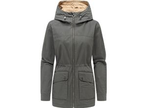 Anorak RAGWEAR "Lenoa Vintage", Damen, Gr. L (40), stone grau, Obermaterial: 100% Baumwolle; Innenfutter: 100% Polyester, relaxed fit Po-bedeckend, hoch geschlossener Ausschnitt, Ärmel mit Ärmelschlitz 1-Knopf-Manschette mit Druckknopf, Jacken, Übergangsparka mit Kapuze und Taillenzugband