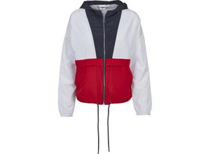 Anorak URBAN CLASSICS "Urban Classics Damen Ladies 3-Tone Oversize Windbreaker", Damen, Gr. S, navy, weiß, firerot, 100% Polyester, mehrfarbig, loose fit, ohne Ausschnitt, Jacken