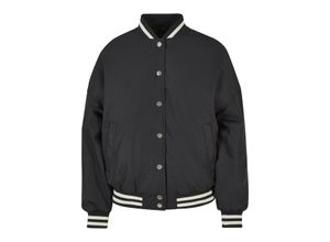 Anorak URBAN CLASSICS "Urban Classics Damen Ladies Oversized Recycled College Jacket", Damen, Gr. S, schwarz, 100% Polyester, mehrfarbig, oversize, amerikanischer Ausschnitt, Jacken
