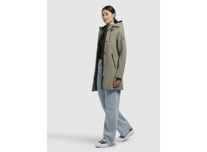 Anorak KHUJO "IZAF3", Damen, Gr. M, grün (graugrün), Canvas, 100% Polyester, unifarben, regular fit ca. Mitte Oberschenkel, eingesetzt elastischer Bund mit Daumenlöchern,mit Windstopper, Jacken
