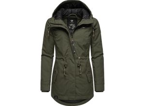 Winterjacke RAGWEAR "Monadis Black Label", Damen, Gr. M (38), grün (olivgrün), Außenmaterial: 65% Polyester, 35% Baumwolle; Innenfutter: 100% Polyester; Wattierung: 100% Polyester, figurbetont Po-bedeckend, hoch geschlossener Ausschnitt, Ärmel ohne Ärmelschlitz Rippstrickbündchen, Jacken Winterjacke, stylischer Winterparka für die kalte Jahreszeit