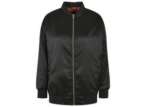 Anorak URBAN CLASSICS "Urban Classics Damen Ladies Oversized Satin Bomber Jacket", Damen, Gr. S, schwarz, 98% Polyester, 2% Elasthan, unifarben, oversize, amerikanischer Ausschnitt, Jacken