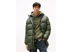 Steppjacke TOMMY JEANS "TJM ESSENTIAL DOWN PARKA", Herren, Gr. L, grün (pewter grün), Web, Obermaterial: 100% Polyamid. Futter: 100% Polyester. Füllung: 70% Daunen, 30% Federn, relaxed fit normal, elastischer Bund, Jacken Steppjacke, Daunenjacke, Übergangsjacke mit Kapuze