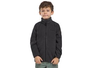 Fleecejacke JACK WOLFSKIN "ICE CURL HOOD JACKET K", Kinder, Gr. 128, phantom, gr, Fleece, Obermaterial: 100% Polyester, normal, hoch geschlossener Ausschnitt, eingesetzt eingefasste Kante, Jacken Fleecejacke, Übergangsjacke mit Kapuze, mit Brusttasche mit Reißverschluss