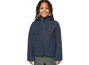 Fleecejacke JACK WOLFSKIN "ICE CURL HOOD JACKET K", Kinder, Gr. 104, blau (midnight sky), Fleece, Obermaterial: 100% Polyester, normal, hoch geschlossener Ausschnitt, eingesetzt eingefasste Kante, Jacken Fleecejacke, Übergangsjacke mit Kapuze, mit Brusttasche mit Reißverschluss