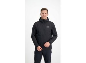Regenjacke JACK WOLFSKIN "OUTROVERT 2L JKT M", Herren, Gr. L (52), schwarz, Web, Obermaterial: 100% Polyester. Futter: 100% Polyester, unifarben, Basic normal, mit verstellbarem Klettverschluss, Jacken Regenjacke, wasserdicht, atmungsaktiv, Übergangsjacke
