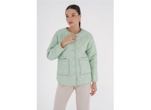 Steppjacke FRESHLIONS "Amara", Damen, Gr. M, grün (mint), 100% Polyester, kariert, unifarben, normal, Rundhals, Jacken Steppjacke, mit praktischen Druckknöpfen