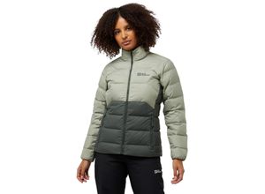 Daunenjacke JACK WOLFSKIN "ATHER", Damen, Gr. S, grün (slate grün), Obermaterial: 100% Polyester. Futter: 100% Polyester. Wattierung: 100% Daunen, hoch geschlossener Ausschnitt, elastischer Bund, Jacken Daunenjacke, Wärmend, winddicht, Übergangsjacke