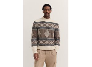 Norwegerpullover BUGATTI "Regular Fit", Herren, Gr. L, 70, beige, Rippstrick, 80% Wolle, 20% Polyamid, regular fit, ohne Ausschnitt, Rippbündchen, Pullover Norwegerpullover, mit Stehkragen