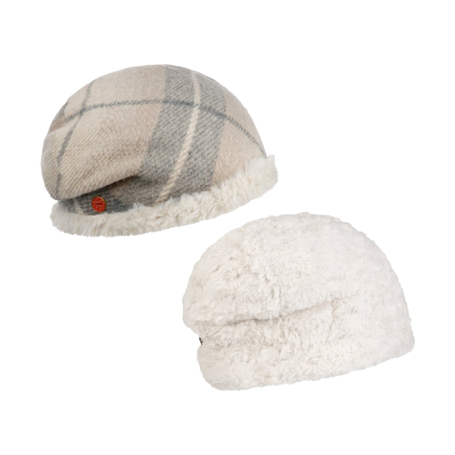 Mayser Czapka Dwustronna Kacey Check jasnobeżowy, One Size, Kobiety czapka damska Beanie na zime Wełna