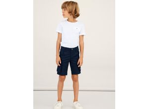Cargobermudas NAME IT "NKMRYAN REG TWI L SHORTS 6776-BA NOOS", Jungen, Gr. 146, N-Gr, blau (schwarz sapphire), Twill, Obermaterial: 98% Baumwolle, 2% Elasthan, unifarben, washed, regular fit kniefrei, Hosen, Baumwollmischung, Stretch, Cargotaschen