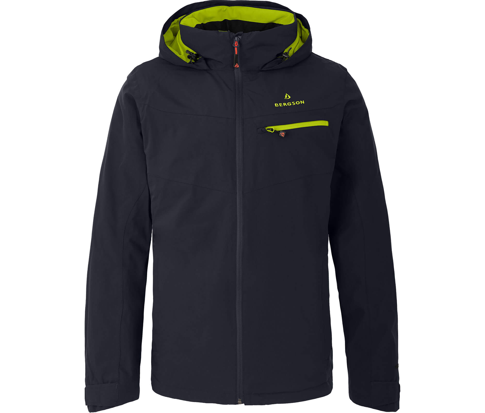 Bergson Tallmos Herren Regenjacke, Langgröße 110, Netzfutter, 20000 mm Wassersäule - dunkelblau/lime punch