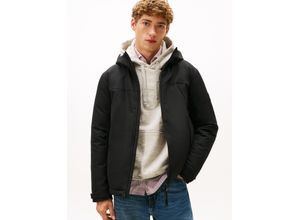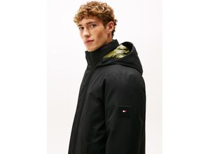 Parka TOMMY HILFIGER "ROCKIE UTILITY HOODED JACKET", Herren, Gr. XL, schwarz, Web, Obermaterial: 100% Polyamid. Futter: 100% Polyamid. Wattierung: 100% Polyester, regular fit normal, Rippstrickbündchen, Jacken Parka, Winterjacke, Outdoorjacke Abnehmbare Kapuze mit Kordelzug, 2-Wege-Reiß