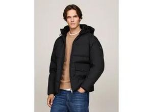 Kurzmantel TOMMY HILFIGER "TECH HOODED PADDED PARKA", Herren, Gr. S, schwarz, Web, Obermaterial: 100% Polyester, regular fit ca. Mitte Oberschenkel, Rundhals, eingesetzt gerader Abschluss, Mäntel Kurzmantel, Regular fit