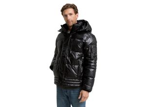 Steppjacke TOM TAILOR, Herren, Gr. L, shiny schwarz, Web, Obermaterial: 100% Polyester. Futter: 100% Polyester, unifarben, regular fit taillenbedeckt, elastischer Bund, Jacken Steppjacke, mit Kapuze