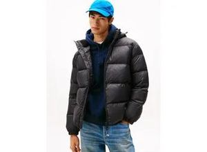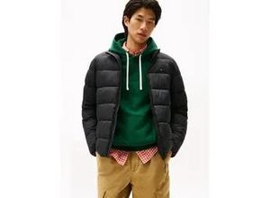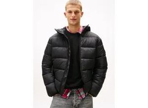 Steppjacke TOMMY JEANS "HOODED LOGO PUFFER", Herren, Gr. M, schwarz, Web, Obermaterial: 100% Polyamid, unifarben, regular fit normal, Rundhals, eingesetzt eingefasste Kante, Jacken Steppjacke, Winterjacke Steppjacke W Regular fit mit Rundhalsausschnitt