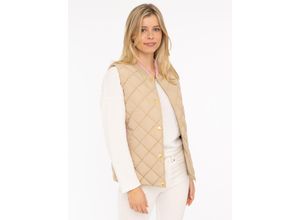 Steppweste ZWILLINGSHERZ "Classic Diamond", Damen, Gr. L, beige, Steppware, Obermaterial: 100% Polyester, Basic hüftbedeckend, ohne Ausschnitt, Westen Steppweste, Knöpfe, Stehkragen, Eingriffstaschen, modisch, Kontrastdeteils