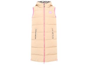 Wendeweste ZWILLINGSHERZ "Leopard", Damen, Gr. L, beige, Steppware, Obermaterial: 100% Polyester, normal knielang, ohne Ausschnitt, Westen, Leo Muster, beidseitig tragbar, modisch, Kapuze, Doppel-Zipper