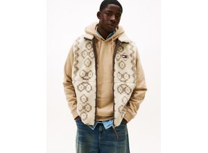 Fleeceweste TOMMY JEANS "TJM TEDDY AOP", Herren, Gr. XL, schwarz walnut aop, Web, Obermaterial: 100% Polyester, normal, Westen Fleeceweste, Stehkragen, normale Passform