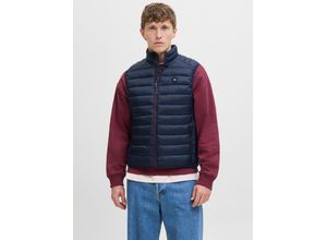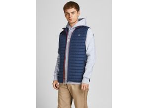 Steppweste JACK & JONES "JJEMULTI BODYWARMER COLLAR NOOS", Herren, Gr. L, blau (navy), Web, Obermaterial: 100% Polyester, unifarben mit Farbeinsatz, regular fit normal, ohne Ausschnitt, Westen Steppweste, normal, Polyester, ohne Kapuze