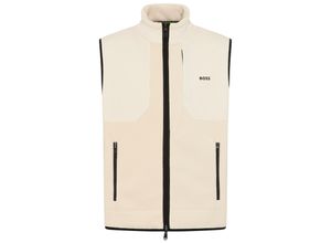 Fleeceweste BOSS GREEN, Herren, Gr. L, open weiß131, Fleece, Obermaterial: 100% Polyester, unifarben, relaxed fit normal, hoch geschlossener Ausschnitt, Westen Fleeceweste, Stehkragen, Relaxed Fit