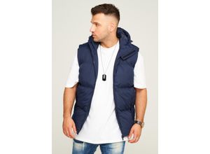 Steppweste BEHYPE "MGLROLLIN", Herren, Gr. L, blau (dunkelblau), 100% Polyester, normal, ohne Ausschnitt, Westen Steppweste, mit Kapuze
