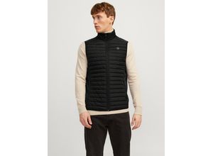 Steppweste JACK & JONES "JJEMULTI BODYWARMER COLLAR NOOS", Herren, Gr. L, schwarz, Web, Obermaterial: 100% Polyester, unifarben mit Farbeinsatz, regular fit normal, ohne Ausschnitt, Westen Steppweste, normal, Polyester, ohne Kapuze