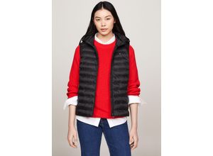 Steppweste TOMMY HILFIGER "LW PADDED GLOBAL STRIPE VEST", Damen, Gr. L (40), schwarz, Web, Obermaterial: 100% Polyester, unifarben, Basic hüftlang, Westen Steppweste, abnehmbare Kapuze, Übergangsweste