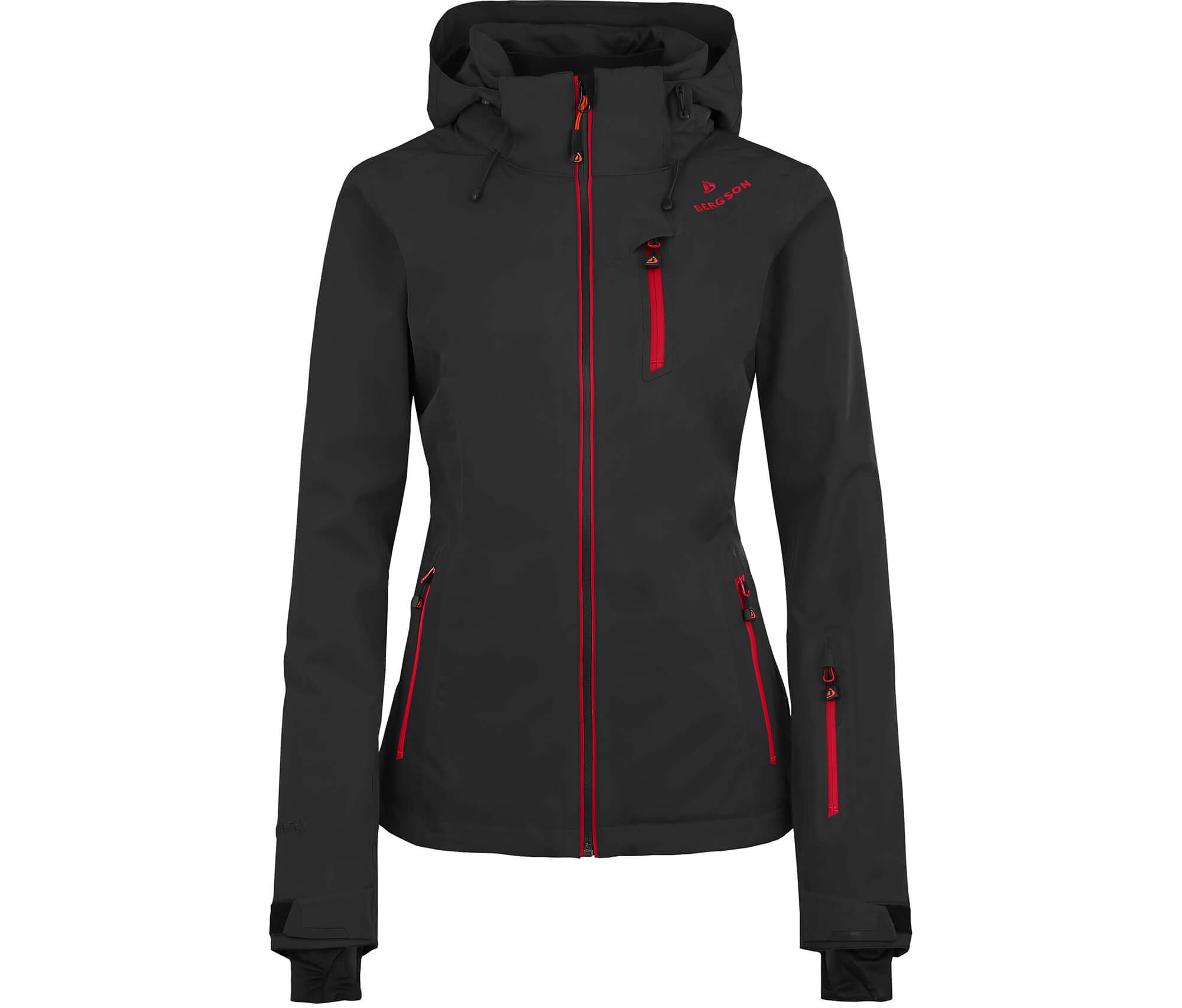 Bergson Nice light Damen Skijacke & Outdoorjacke, Langgröße 72, gefüttert, 20000 mm Wassersäule - schwarz/rot