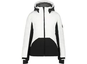 Skijacke ICEPEAK "ICEPEAK EVELETH", Damen, Gr. 50, optic weiß, Obermaterial: 100% Polyester. Futter: 100% Polyester. Wattierung: 100% Polyester, regular fit hüftlang, hoch geschlossener Ausschnitt, mit Klettverschluss,mit Windstopper,verstellbar, Jacken Skijacke, mit regulierbarer Kapuze und Stehkragen, verstellbare Ärmelbündchen