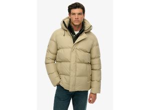 Steppjacke SUPERDRY "HOODED 5 BAFFLE SPORTS PUFFER", Herren, Gr. S, winter twig beige, Web, Obermaterial: 100% Polyester, unifarben, relaxed fit normal, Jacken Steppjacke, Kunstfaser, relaxed fit