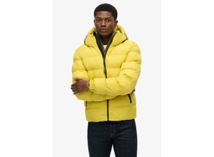 Steppjacke SUPERDRY "HOODED SPORTS PUFFER JACKET", Herren, Gr. L, gelb (wax gelb), Web, Obermaterial: 100% Polyester, unifarben, relaxed fit normal, elastischer Bund, Jacken Steppjacke, Kunstfaser, relaxed fit