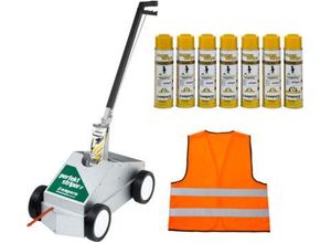 Bodenmarkierer Perfekt-Striper + 12 Dosen gelb Markierungsfarbe SET + Warnweste GRATIS