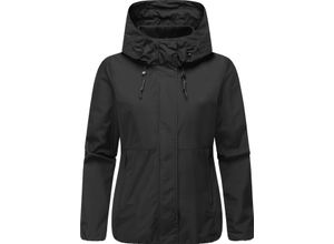Regenmantel RAGWEAR "Begonia", Damen, Gr. 4XL (48), schwarz, Obermaterial: 100% Polyester; Innenfutter: 100% Polyester, figurumspielend Po-bedeckend, hoch geschlossener Ausschnitt, mit Knöpfen,mit Umschlag,verstellbar Umschlagsaum mit Druckknopf, Mäntel, Wasserdichter Damen Übergangsmantel mit großer Kapuze