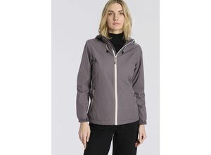 Regenjacke NAVAHOO "Tropical Stormoo", Damen, Gr. L (40), grau (taupe), Obermaterial: 70% Polyester, 30% Polyurethan; Innenfutter: 100% Polyester; Ärmelfutter: 100% Polyester; Wattierung: 100% Polyester, tailliert ca. Mitte Oberschenkel, hoch geschlossener Ausschnitt, Ärmel ohne Ärmelschlitz Rippstrickbündchen, Jacken Regenjacke, Wasserdichter Damen Outdoor Regenmantel