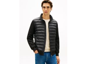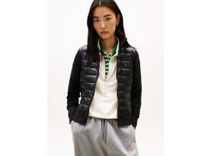 Steppjacke TOMMY HILFIGER "MIX MEDIA mit Stehkragen", Damen, Gr. L, schwarz, Sweatware, Obermaterial: 72% Baumwolle, 28% Polyester, unifarben, regular fit normal, Rippbündchen, Jacken Steppjacke, unifarben, casual, regular fit, Baumwollmix